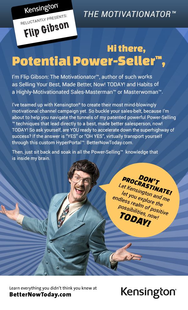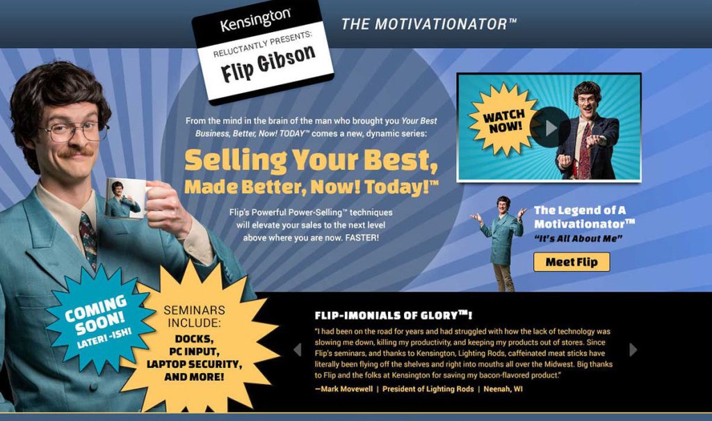 Enter Flip Gibson, The Motivationator™: an over-the-top motivational guru with enough personality and product knowledge to spare. He may be odd. He may be cheesy. But he stands out and gets the job done. Campaign deliverables included multiple waves of emails, web banners, microsite content, hilarious promo videos, and supporting print collateral.